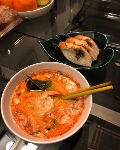 @s_a_d_o_v_o_yСлишком острая тайская еда? Ноу, спайси, плиз... Но я предпочитаю ощущать все 50 оттенков острого, поэтому когда готовлю Том Ям дома, не скуплюсь на перчики ??? Кстати на фото не только суп моего приготовления, но и бомбическая фруктница, или хлебница, кому как больше нравится, сделанная своими руками в @kolokolschool_msk ?❤️